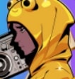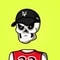 Skeleton, Bald, Skull Tee, Cargo Pants, Dark Gray, Running, purple Sold: |